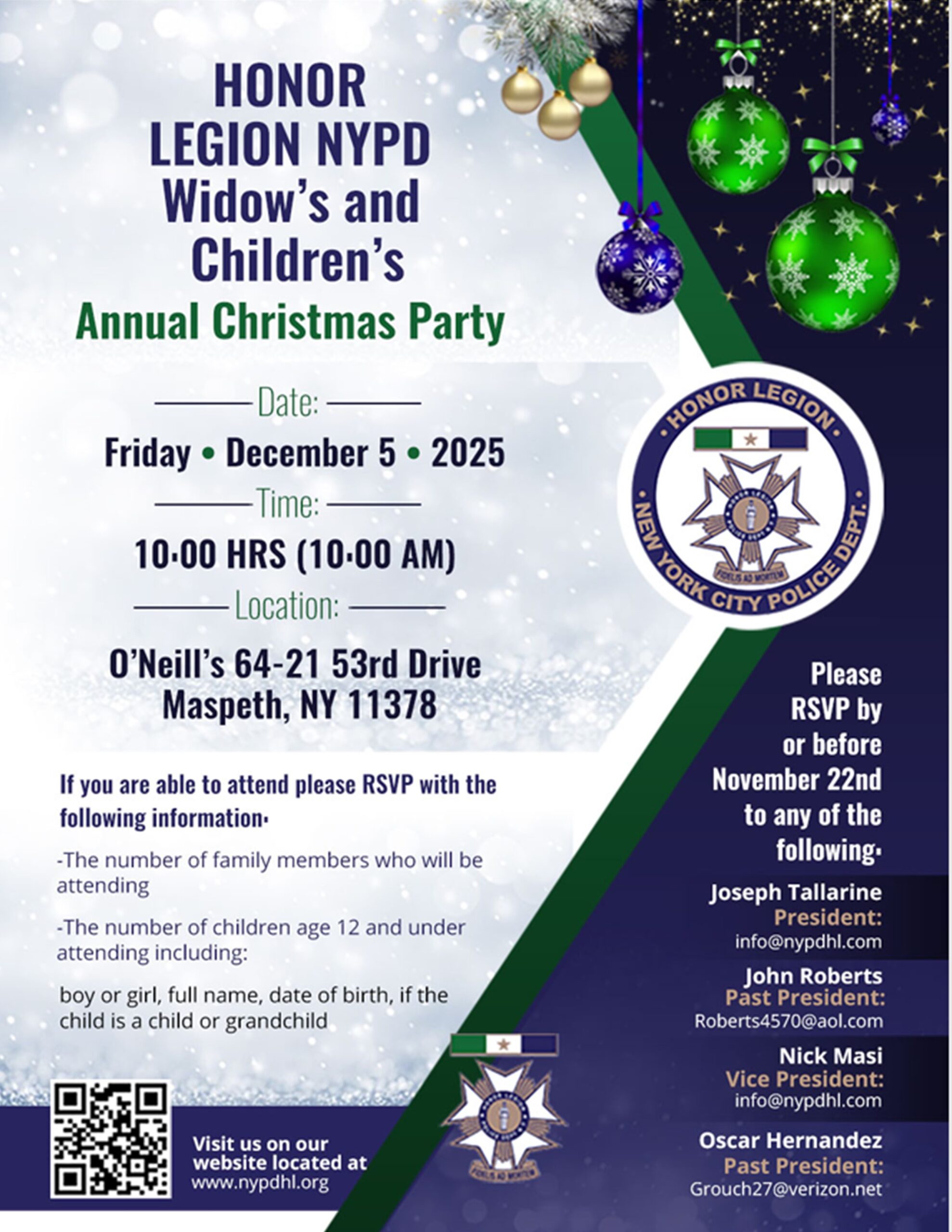 Honor Legion’s NYPD Widow’s and Children’s annual Christmas Party