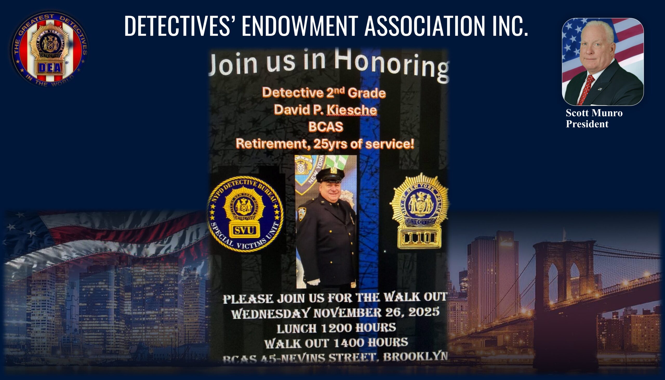 FOR YOUR INFORMATION, If your schedule permits, please consider attending this event: Retirement Walkout in honor of Detective 1st Grade Thomas Cerbone, Hwy Unit # 5 after 42 Years of Dedicated Service TUESDAY, NOVEMBER 25, 2025 NYPD Highway Unit 5 2330 Hylan Blvd, Staten Island 10306 1200 Hours for Luncheon 1400 Hours for the Walkout […] |